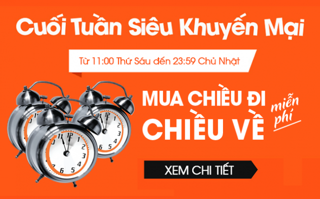 Mua chiều đi, miễn phí chiều về. Cuối tuần siêu khuyến mãi của Jetstar Pacific! Chương trình khuyến mãi bắt đầu từ 11:00 ngày 09/09 và kết thúc vào 23:59 ngày 11/9/2016.