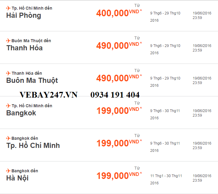 Giá vé một chiều, chưa bao gồm thuế, phí. Giá vé phụ thuộc tình trạng chỗ của chuyến bay và chỉ mở bán cho một số chuyến bay và ngày bay. Vé không được hoàn, hạn chế thay đổi, nếu thay đổi phải đóng phí. Không bao gồm Hành lý ký gửi. Các tiêu chuẩn về trọng lượng và kích thước của Hành lý xách tay sẽ được áp dụng. Hành khách mang Hành lý xách tay không đúng với quy định sẽ phải làm thủ tục ký gửi và phải đóng phí.