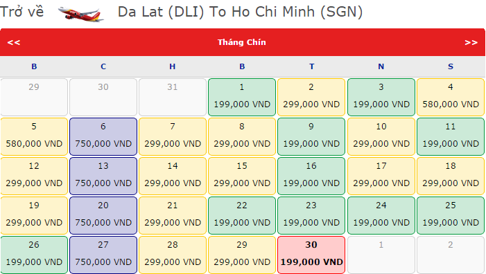 Ngược lại, vé máy bay đi TP.HCM, khởi hành từ Hà Nội, cũng được mở bán với giá chỉ từ 599.000 đồng: