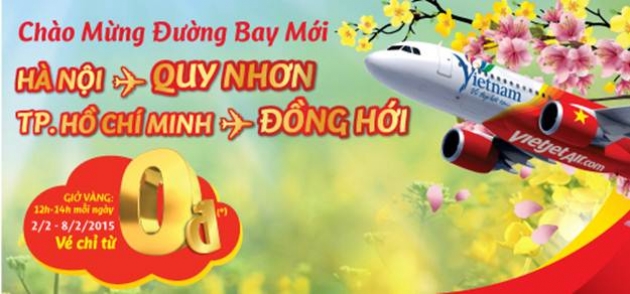VietJet Air mở bán vé siêu tiết kiệm, từ ngày 02/02/2015 - 08/02/2015 tung ra vé máy bay 0 đồng . Hãy để đại lý Vebay247.vn là người bạn đồng hành cùng bạn trên khắp các chuyến bay.