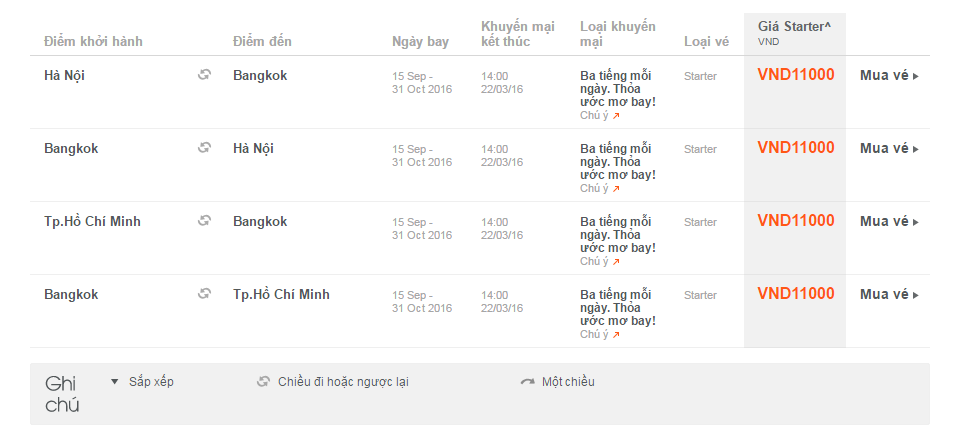 Khung giờ khuyến mại: 11:00 - 14:00 ngày 21/03/2016 Giá vé khuyến mại: 11.000 ĐỒNG Chặng bay khuyến mại: ☁ Hà Nội ✈ Đà Lạt Giai đoạn bay: 15/09/2016 - 31/10/2016 ☁ TP. Hồ Chí Minh ✈ Nha Trang Giai đoạn bay: 15/09/2016 - 31/10/2016 Bay ngay chỉ với 11.000 đồng tại www.vebay247.vn trong khung giờ 11:00 - 14:00 hằng ngày