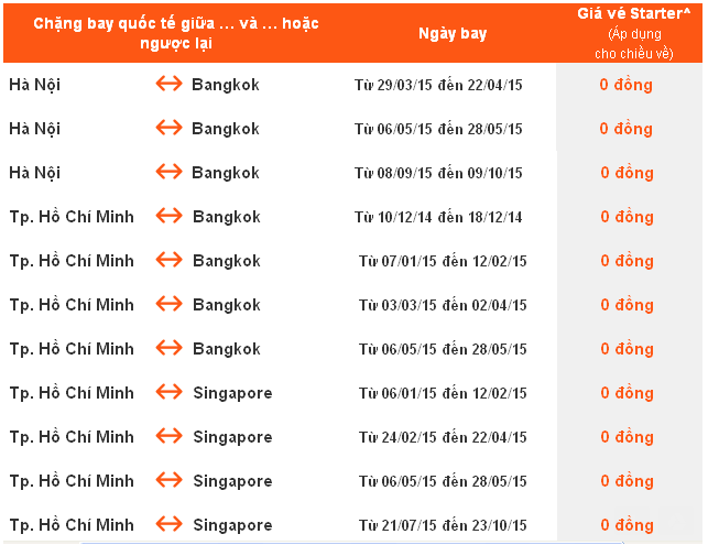 Lưu ý: Để mua được vé khuyến mại 0 đồng, Quý khách phải lựa chọn hành trình bay khứ hồi trong giai đoạn có khuyến mại. Khi đó giá mở bán cho chiều đi là giá bình thường trên hệ thống, giá mở bán cho chiều về được khuyến mại chỉ 0 đồng.