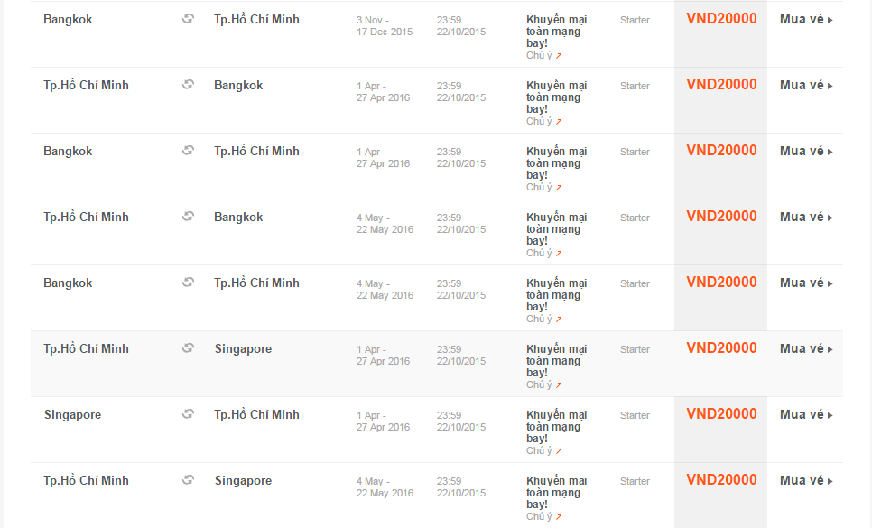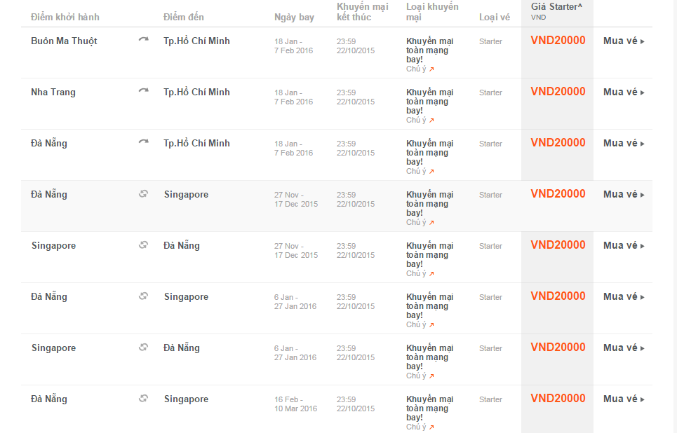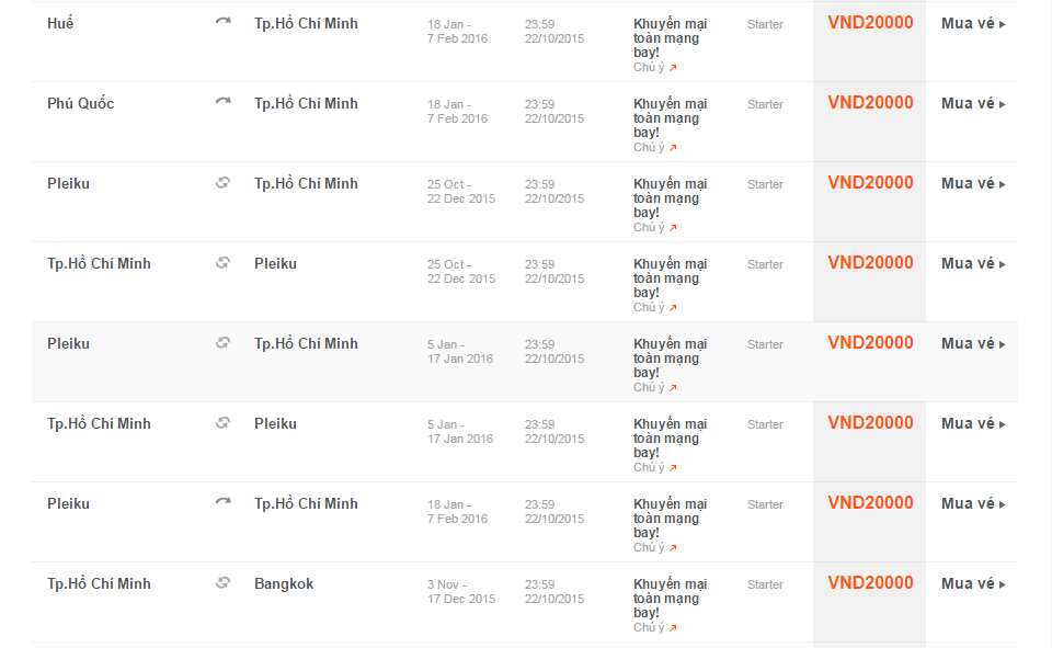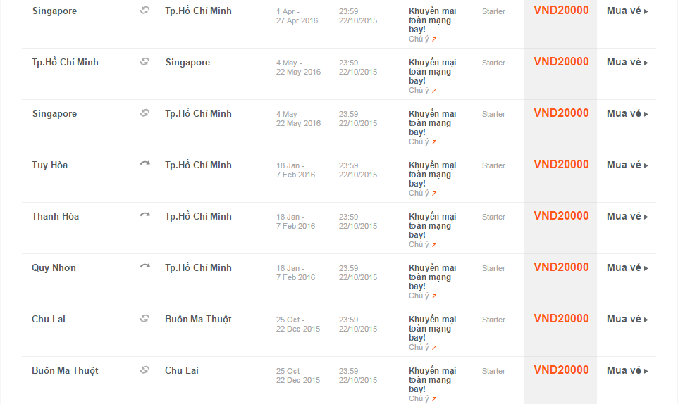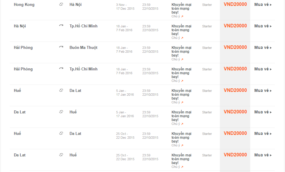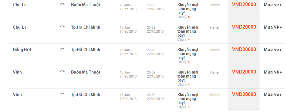 Giá vé một chiều, chưa bao gồm thuế, phí. Giá vé phụ thuộc tình trạng chỗ của chuyến bay và chỉ mở bán cho một số chuyến bay và ngày bay. Vé không được hoàn, hạn chế thay đổi, nếu thay đổi phải đóng phí. Không bao gồm Hành lý ký gửi. Các tiêu chuẩn về trọng lượng và kích thước của Hành lý xách tay sẽ được áp dụng. Hành khách mang Hành lý xách tay không đúng với quy định sẽ phải làm thủ tục ký gửi và phải đóng phí.