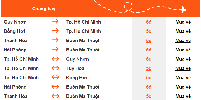 Giữa Tp.Hồ Chí Minh và Quy Nhơn: khai thác từ ngày 01/02/2015 với tần suất hàng ngày
