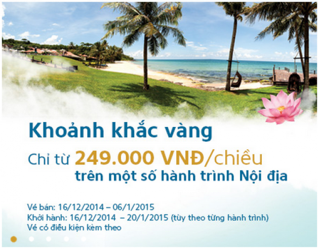 VietNam Airlines triển khai chương trình khuyến mãi vé máy bay cho một số hành trình nội địa mở bán từ ngày 16 tháng 12 và kết thúc ngày 06/01/2015.