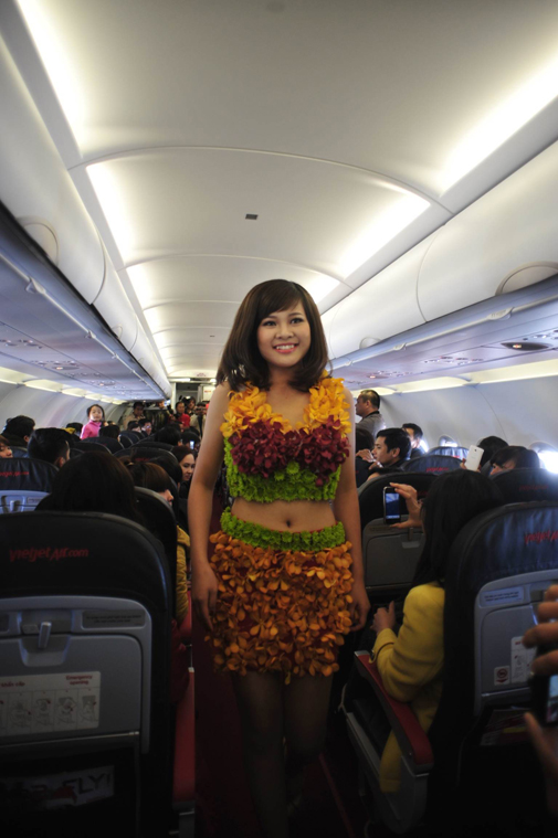 Thật “đẹp”, “nóng bỏng”, “ thú vị”, “sốc hơn Victoria Secret” là những bình luận của hành khách dành cho show diễn thời trang lần đầu tiên được thực hiện trên chuyến bay khai trương Vinh – Đà Lạt của VietJetAir. Hành khách còn gọi đây là “chuyến bay hoa”: đến xứ sở hoa – xem thời trang hoa và mỗi hành khách đều được tặng hoa hồng xinh xắn