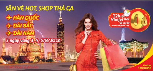 Liên tục dội vào thị trường những con bão vé máy bay 0 ĐỒNG với cấp độ mạnh, hãng hàng không Vietjet đã khiến không ít khách hàng đứng ngồi không yên. Lần này, Hãng tiếp tục tung ra 30,000 vé máy bay 0 ĐỒNG để mang đến cho quý khách hàng những hành trình vi vu siêu tiết kiệm.