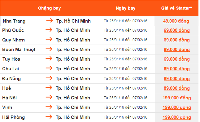 Giá vé một chiều, chưa bao gồm thuế, phí. Giá vé phụ thuộc tình trạng chỗ của chuyến bay và chỉ mở bán cho một số chuyến bay và ngày bay. Vé không được hoàn, hạn chế thay đổi, nếu thay đổi phải đóng phí. Không bao gồm Hành lý ký gửi. Các tiêu chuẩn về trọng lượng và kích thước của Hành lý xách tay sẽ được áp dụng. Hành khách mang Hành lý xách tay không đúng với quy định sẽ phải làm thủ tục ký gửi và phải đóng phí.