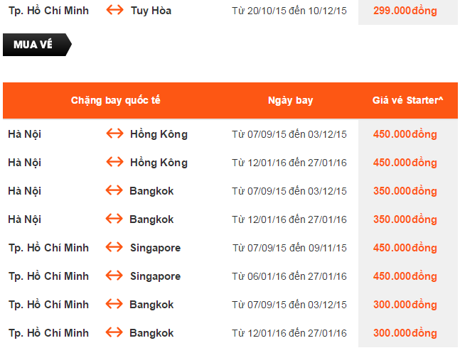 Vé một chiều, chưa bao gồm thuế, phí, phụ thuộc tình trạng chỗ của chuyến bay và chỉ mở bán cho một số chuyến bay và ngày bay. Vé không được hoàn, hạn chế thay đổi, nếu thay đổi phải đóng phí. Không bao gồm Hành lý ký gửi. Các tiêu chuẩn về trọng lượng và kích thước của Hành lý xách tay sẽ được áp dụng.
